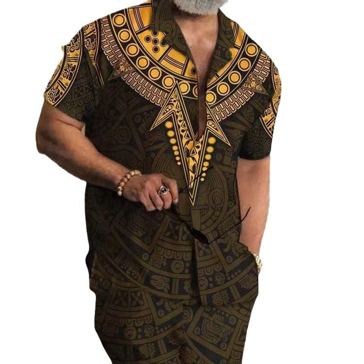 Men's New Polo Collar 3D Printed Casual Slim Fit Shirt Shorts Suit